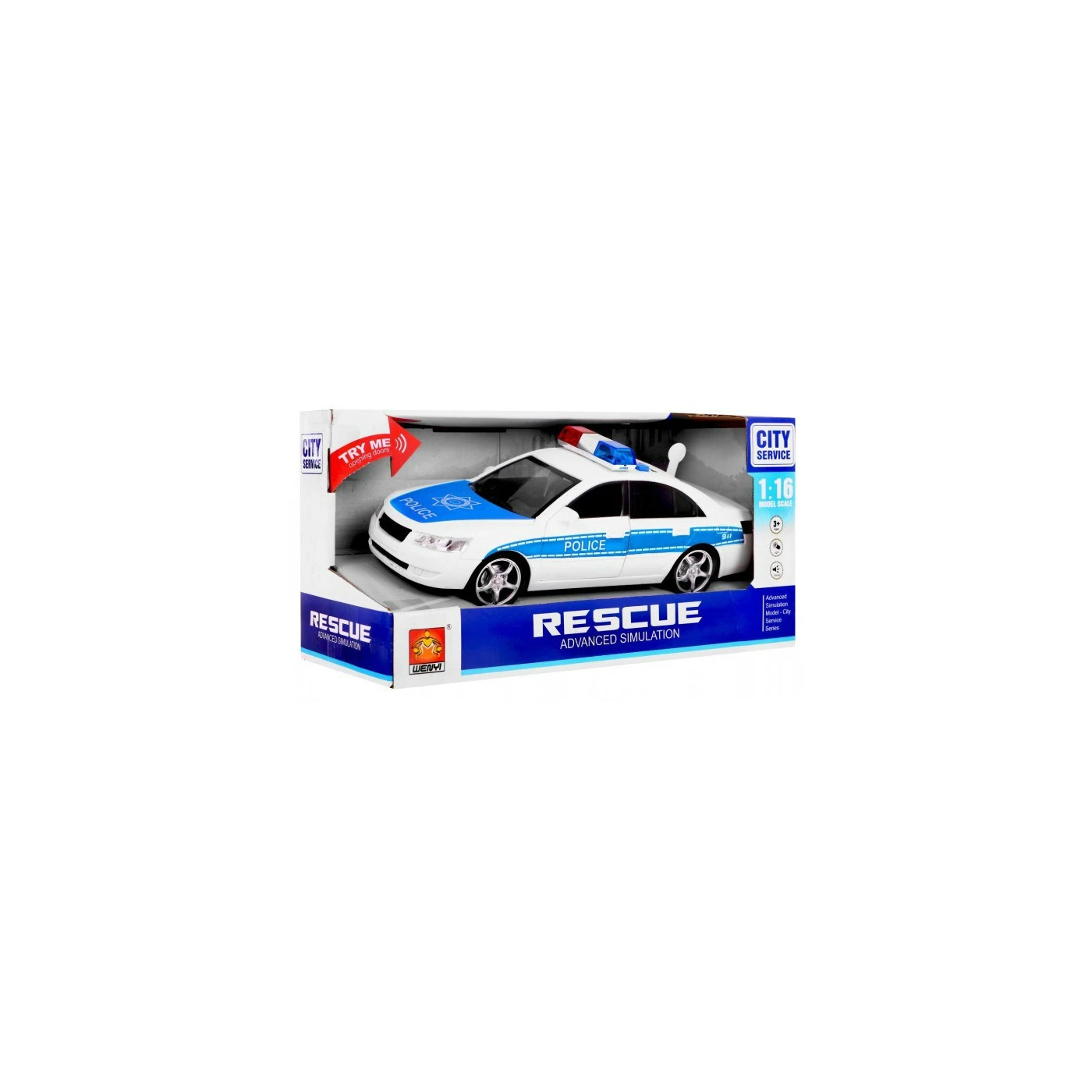 Policajné auto GIGA v mierke 1:16 je určené pre deti od 3 rokov. Hračka má svetelné a zvukové efekty, ktoré sa aktivujú počas hry. Majáky blikajú a ozývajú sa zvuky sirény, klaksónu a štartu motora.